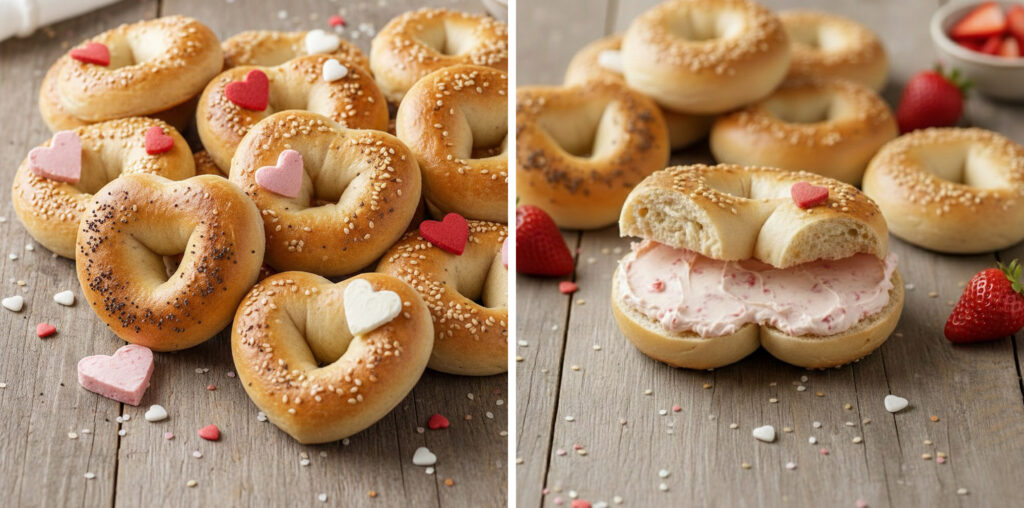 Breakfast in bed anyone? Go the extra mile and make these homemade heart shaped bagels. For a delightful pop of pink, add a schmear of strawberry cream cheese.