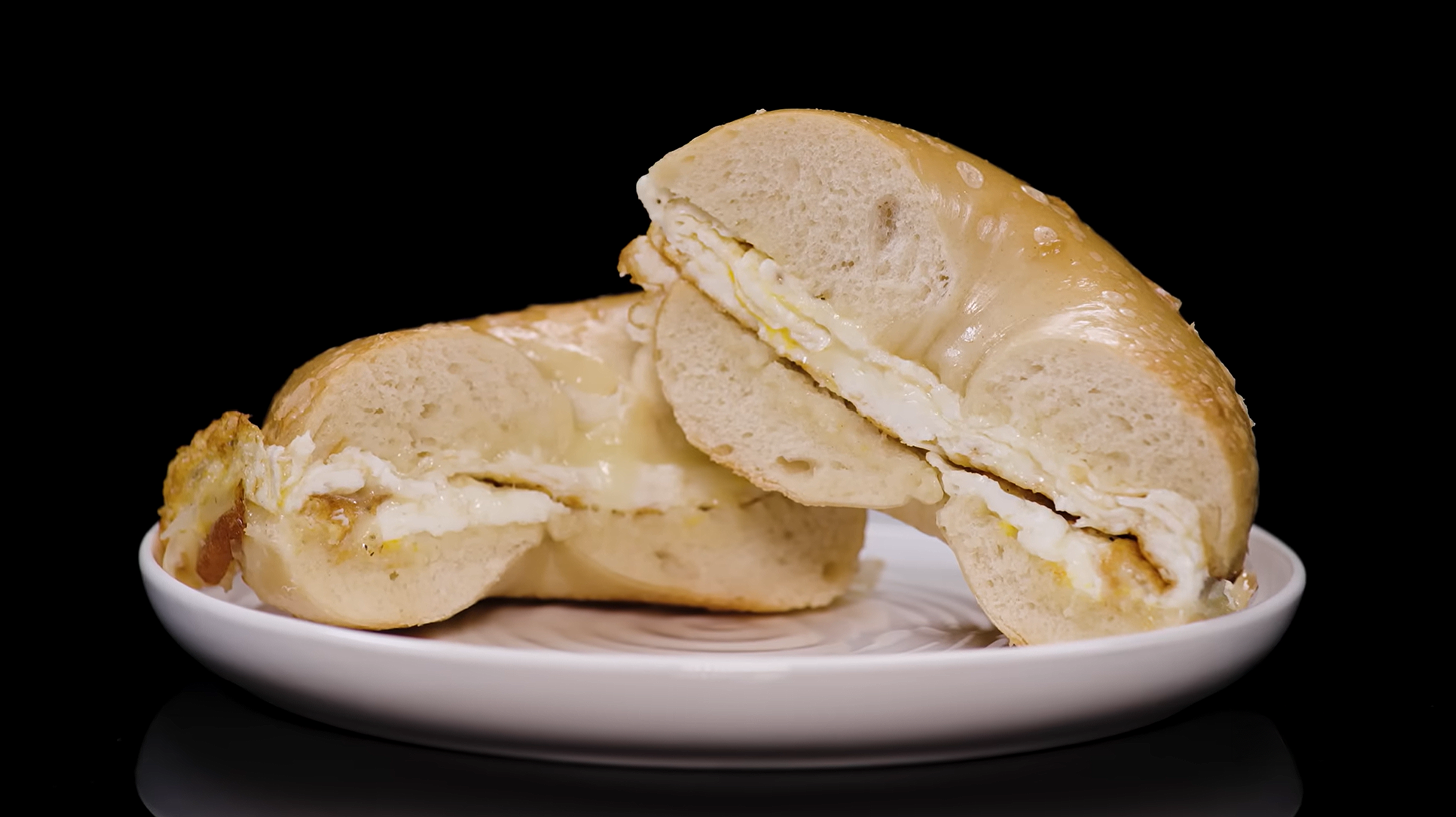 - Assemble the sandwich: Transfer the egg-and-cheese filling onto the bottom half of the toasted bagel. Sprinkle lightly with salt and pepper.